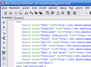 HomeSite когда-то был одним из ведущих редакторов кода широко используемым среди разработчиков. Многое произошло с тех пор: HomeSite был куплен Adobe, где он не имеет большого значения сегодня. Вместе с тем, HomeSite имеет некоторые функции, такие как управление проектами, комплексный CSS редактор, код snippets, тег инспектор, завершение тегов, макро-рекордер, folder deployment, автоматическое резервное копирование, расширяемый пользовательский интерфейс и интеграция с Fireworks.