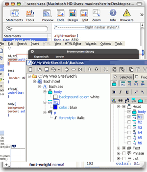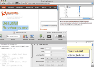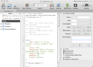Аналогично XyleScope, CSSEdit предоставляет "real-time" редактирование таблиц стилей, даже тогда, когда используются динамические веб-приложения с использованием баз данных или AJAX. Вы можете редактировать и анализировать стили без хлопот о загрузке или обновлении (онлайн и оффлайн режиме). Selector Builder позволяет описывать элементы на обычном английском языке. Интеллектуальный CodeSense анализирует CSS и CSS-behavior чтобы предложить умный, контекстно-зависимый совет.